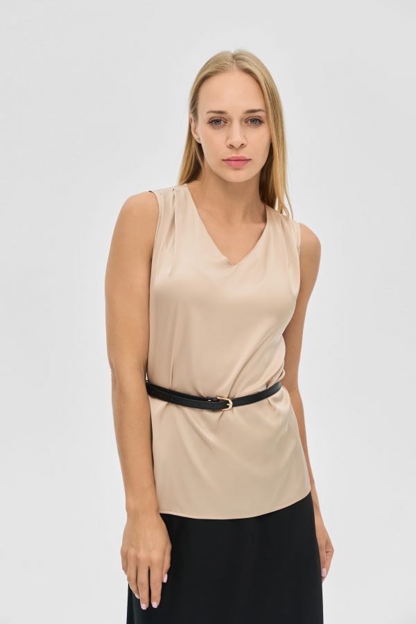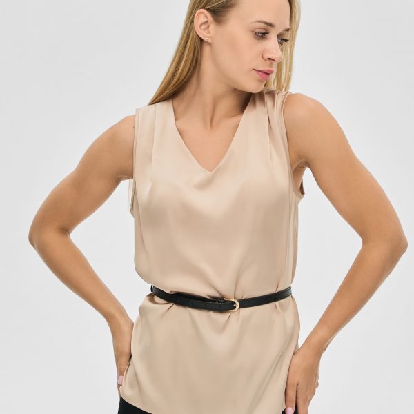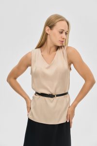 • Тканина: Блуза виконана з високоякісної віскозної тканини з легким, благородним матовим блиском. Цей матеріал неймовірно м’який, приємний до тіла, гарно драпірується та дозволяє шкірі дихати, що робить його ідеальним для будь-якого сезону.