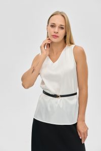 Як стилізувати? Для створення класичного ділового образу носіть її заправленою у спідницю-олівець або брюки, доповнивши тонким ременем. Для повсякденного стилю поєднуйте з джинсами або лляними штанами. Вона стане ідеальною супутницею для будь-якого “низу”.