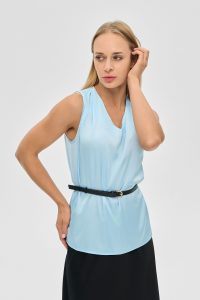 • Універсальність: Це ідеальна блуза для створення безлічі образів. Вона бездоганно виглядає під жакетом чи кардиганом, а також є самодостатнім елементом для елегантного літнього образу.