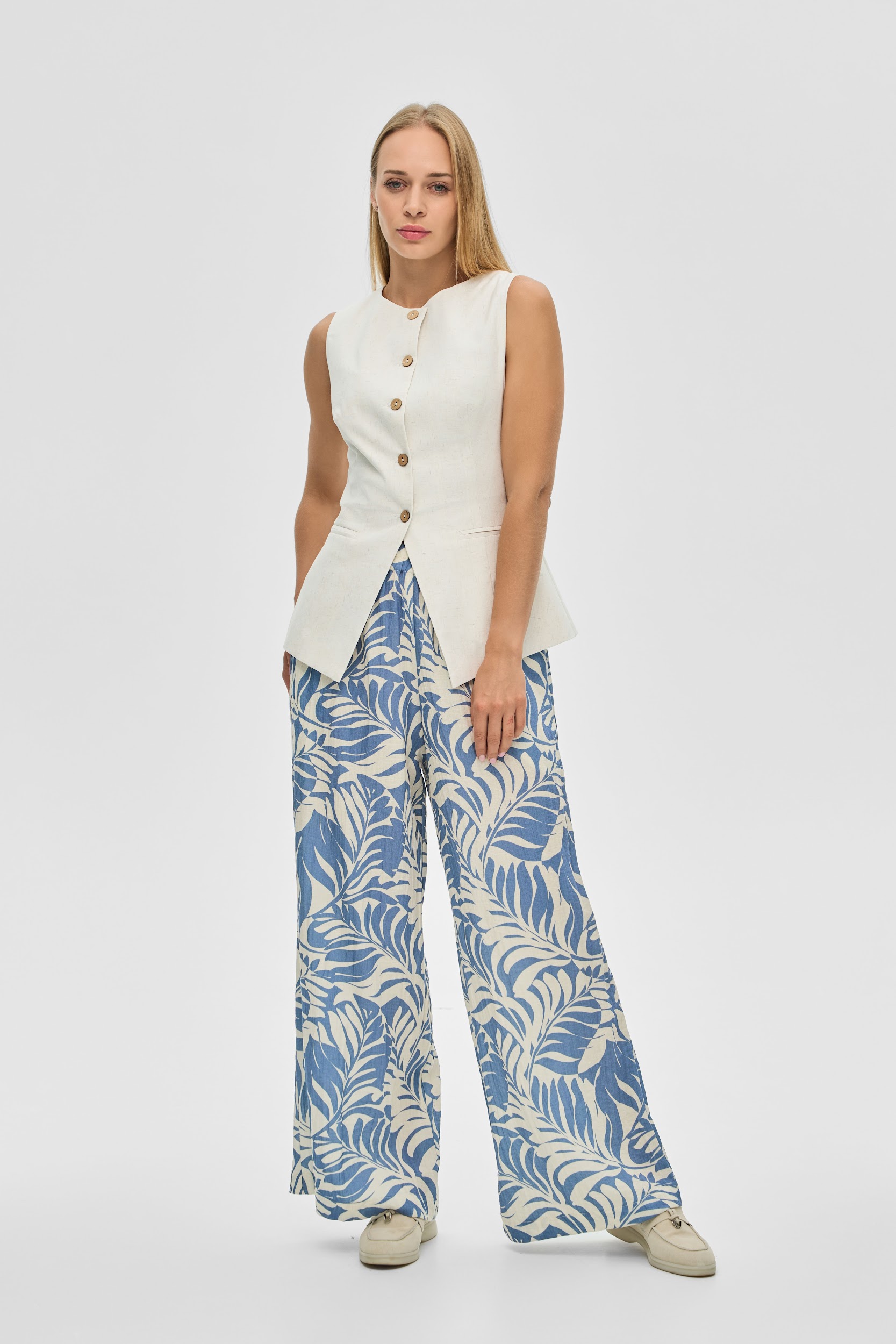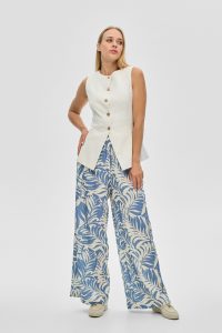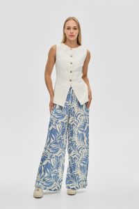 Створіть ефектний та незабутній літній образ з нашими новими штанами-палаццо. Виразний тропічний принт та летючий силует роблять цю модель яскравим акцентом будь-якого гардероба та миттєво створюють настрій відпустки, навіть якщо ви залишаєтесь у місті.