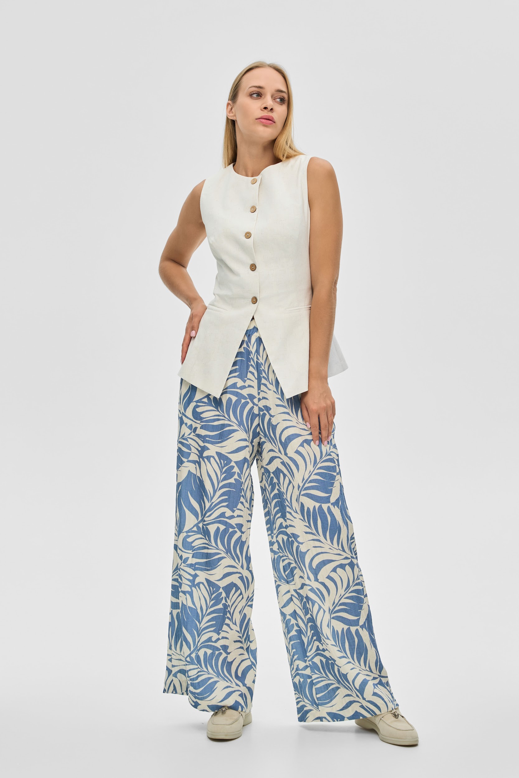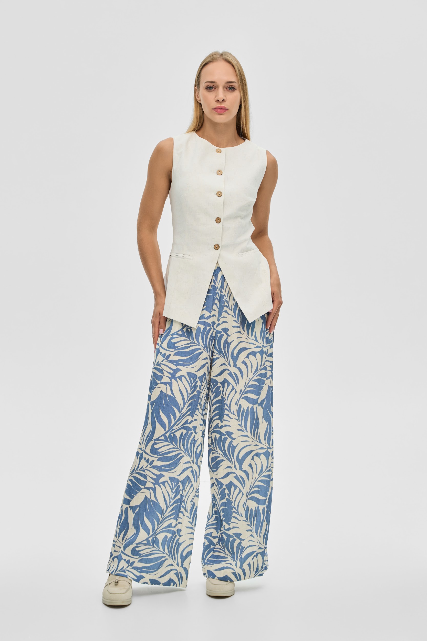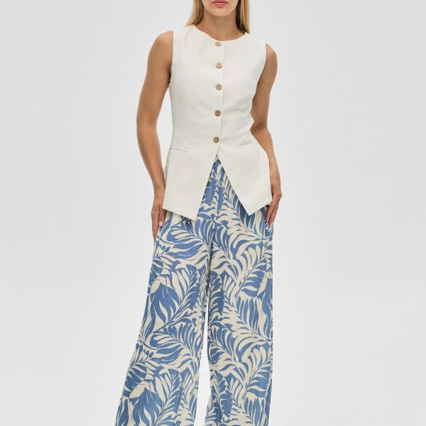 Як стилізувати? Ці штани — універсальна основа для експериментів. Для створення вишуканого та завершеного образу поєднуйте їх з нашим приталеним лляним жилетом. Для більш розслабленого стилю носіть їх з базовим топом, футболкою чи легкою сорочкою.