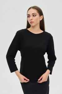 • Деталі: Акуратний круглий виріз та комфортна довжина рукава ¾ — лаконічні деталі, що підкреслюють універсальність та елегантність моделі.