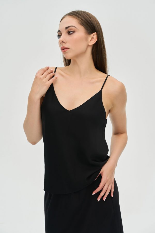 Чорний шовковистий топ
