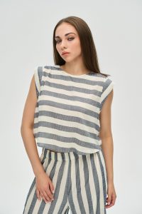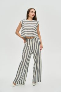 Зустрічайте літо у яскравому та впевненому образі! Наш новий костюм у широку смужку — це втілення морського шику та розслабленої елегантності. Створений для сміливих та стильних жінок, він гарантовано привертатиме захоплені погляди та даруватиме відчуття абсолютного комфорту.