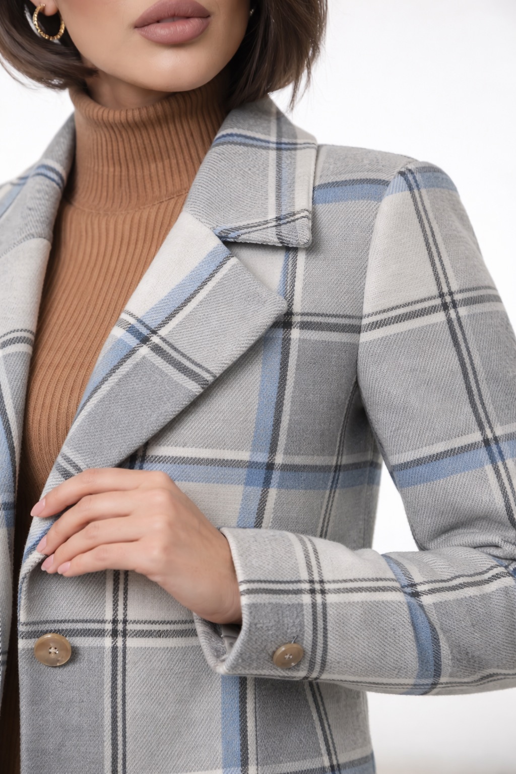 Втілення англійської класики та сучасного міського шику. Цей жакет у виразну клітинку — ідеальний вибір для тих, хто шукає баланс між строгістю та затишком. Завдяки щільній фактурі тканини та продуманому крою, він може слугувати як самостійний верхній одяг у міжсезоння або як теплий акцентний шар у зимовому гардеробі. Його графічний принт та чіткі лінії силуету миттєво роблять образ зібраним та статусним.