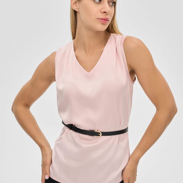 - Тканина: Блуза виконана з високоякісної віскозної тканини з легким, благородним матовим блиском. Цей матеріал неймовірно м’який, приємний до тіла, гарно драпірується та дозволяє шкірі дихати, що робить його ідеальним для будь-якого сезону.