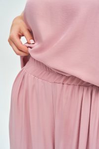 - Крій: Широкі штани візуально видовжують силует, а вільний топ забезпечує максимальний комфорт та пасує до будь-якого типу фігури.