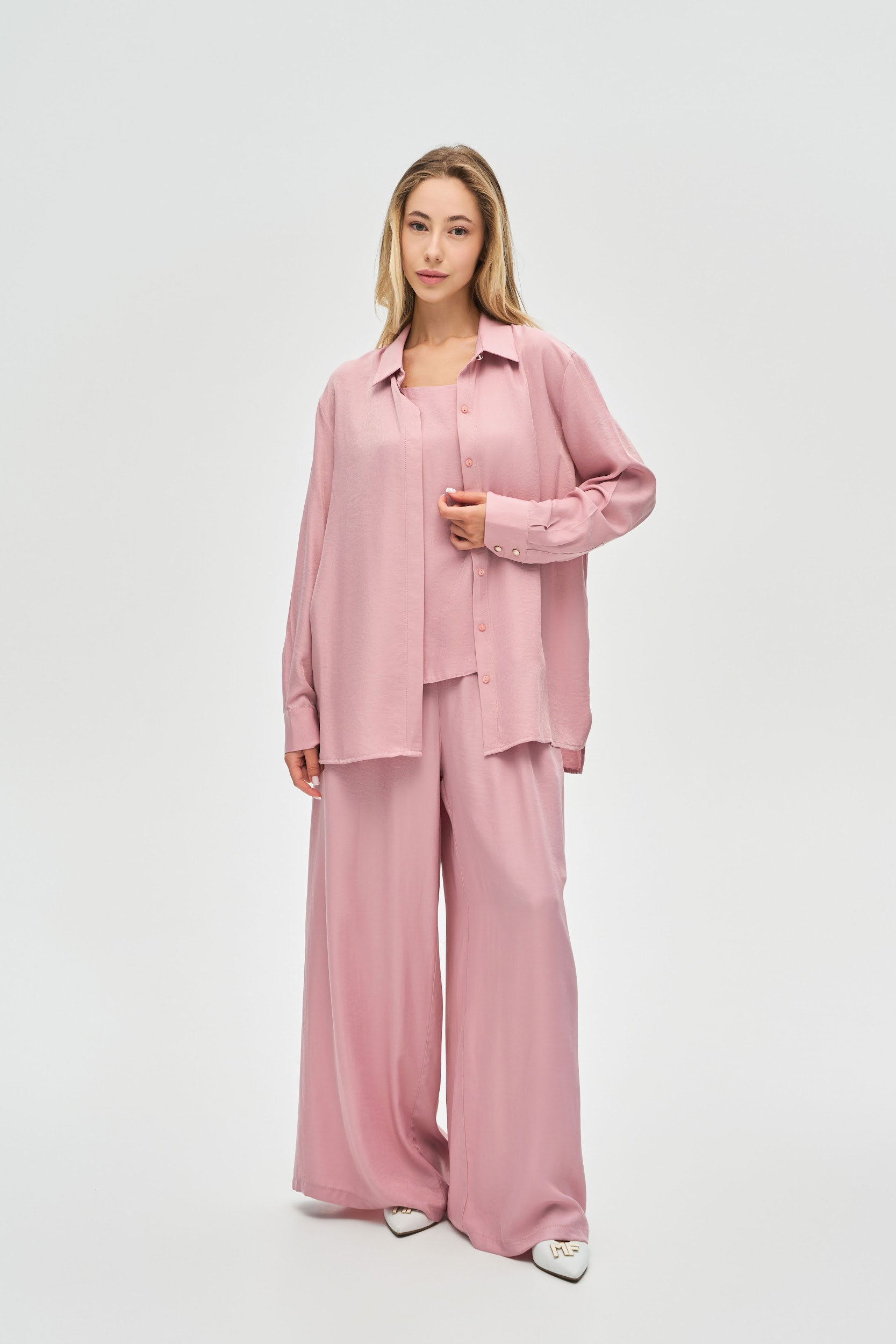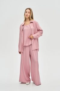 Доповніть образ: Для створення довершеного багатошарового образу або для прохолодного вечора, рекомендуємо доповнити костюм сорочкою вільного крою з ідентичної тканини, що продається на нашому сайті як окремий товар.