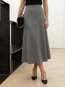 Спідниця: Елегантна довжина міді та А-силует створюють жіночний та летючий образ. Чистий крій пояса підкреслює талію та забезпечує комфортну посадку.