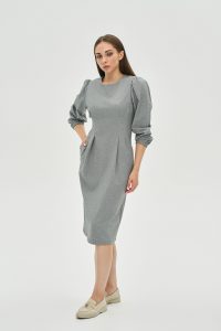 - Силует: Приталений верх та спідниця, що м’яко спадає, створюють збалансований і витончений образ.