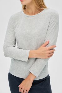 • Деталі: Акуратний круглий виріз та комфортна довжина рукава ¾ — лаконічні деталі, що підкреслюють універсальність та елегантність моделі.