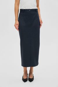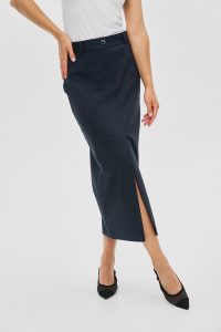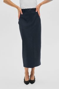 - Тканина: Спідниця виконана з високоякісної костюмної тканини, що чудово тримає форму, не деформується та виглядає бездоганно навіть наприкінці довгого робочого дня.