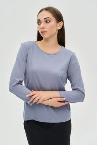 • Деталі: Акуратний круглий виріз та комфортна довжина рукава ¾ — лаконічні деталі, що підкреслюють універсальність та елегантність моделі.