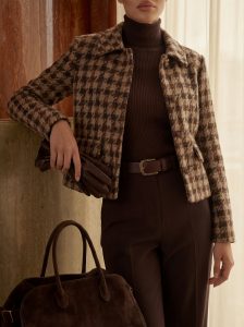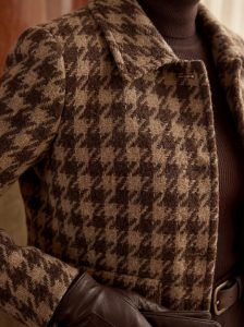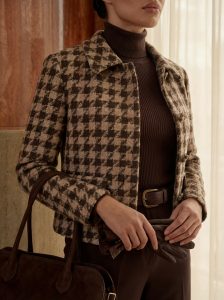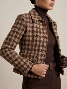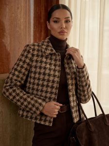 Цей жакет — справжній маст-хев для створення образів у стилі «тихої розкоші». Поєднання класичного візерунка «гусяча лапка», вкороченого крою та преміальної фактури робить його ідеальним вибором для тих, хто цінує елегантність із сучасним акцентом.