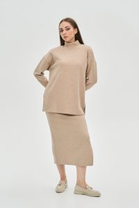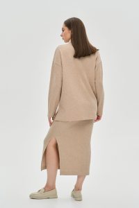 Соберите идеальный костюм: Для создания трендового монохромного образа рекомендуем сочетать джемпер с юбкой-миди из трикотажа в рубчик идентичного оттенка, которая продается отдельно. Сочетание разных фактур в одном цвете выглядит особенно стильно и современно.