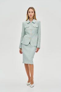 Благодаря классическому крою и фактурной ткани, она выглядит сдержанно, женственно и очень статусно.