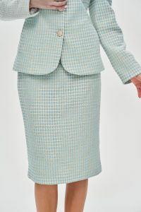 • Крой: Классический крой «карандаш» с высокой посадкой идеально очерчивает фигуру, создавая утонченный силуэт. Оптимальная длина до колена универсальна и всегда уместна.