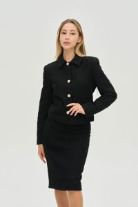 Секрет вневременной элегантности — в безупречном крое и внимании к деталям. Этот укороченный твидовый жакет является современной интерпретацией легендарного стиля, который придаст вашему образу статусности и изысканного шарма.