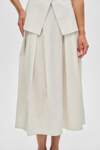 - Длина: Элегантная длина миди — универсальна и всегда актуальна, подходит к обуви как на каблуке, так и на плоской подошве.