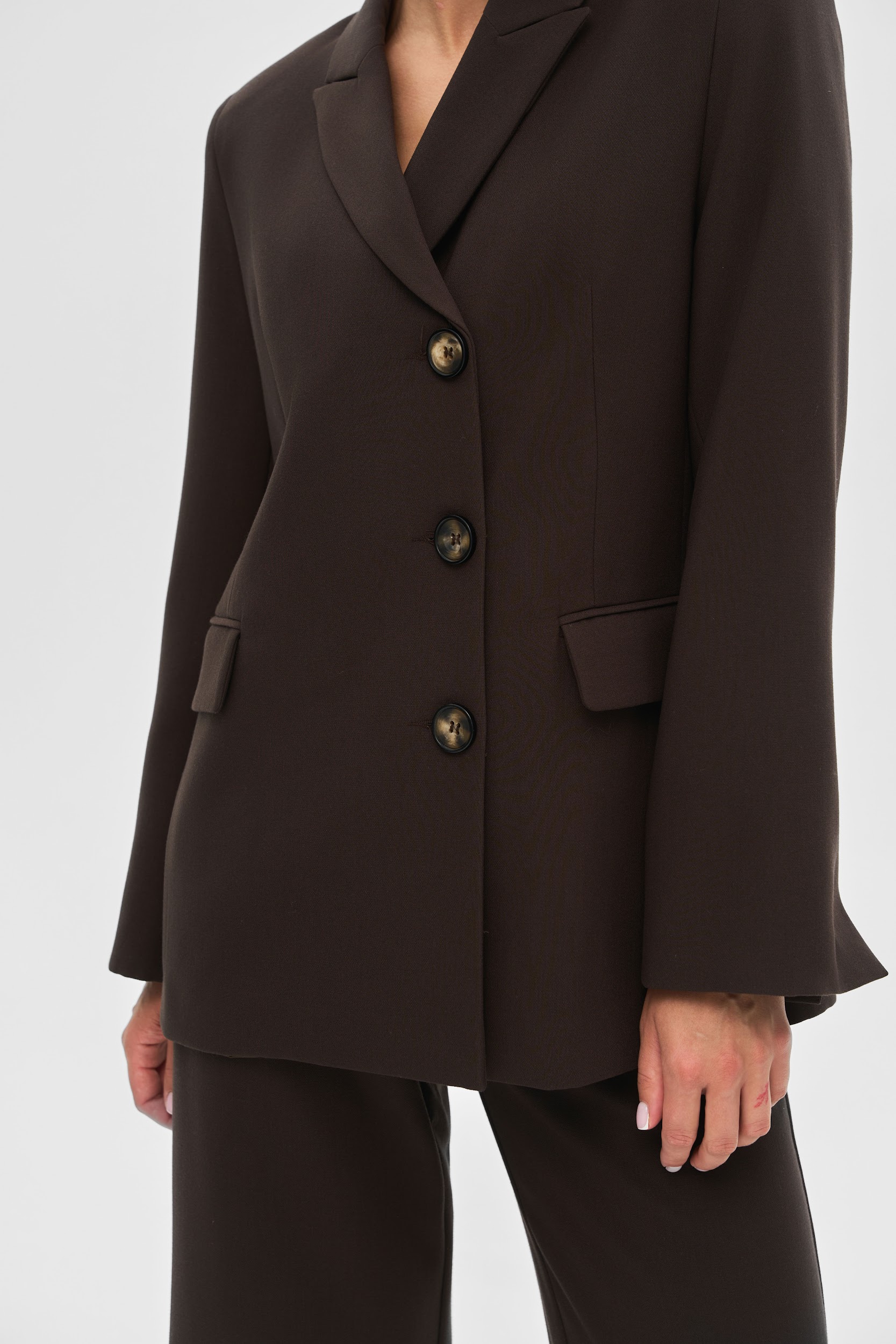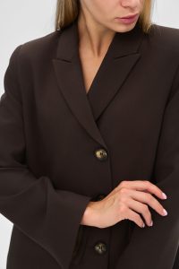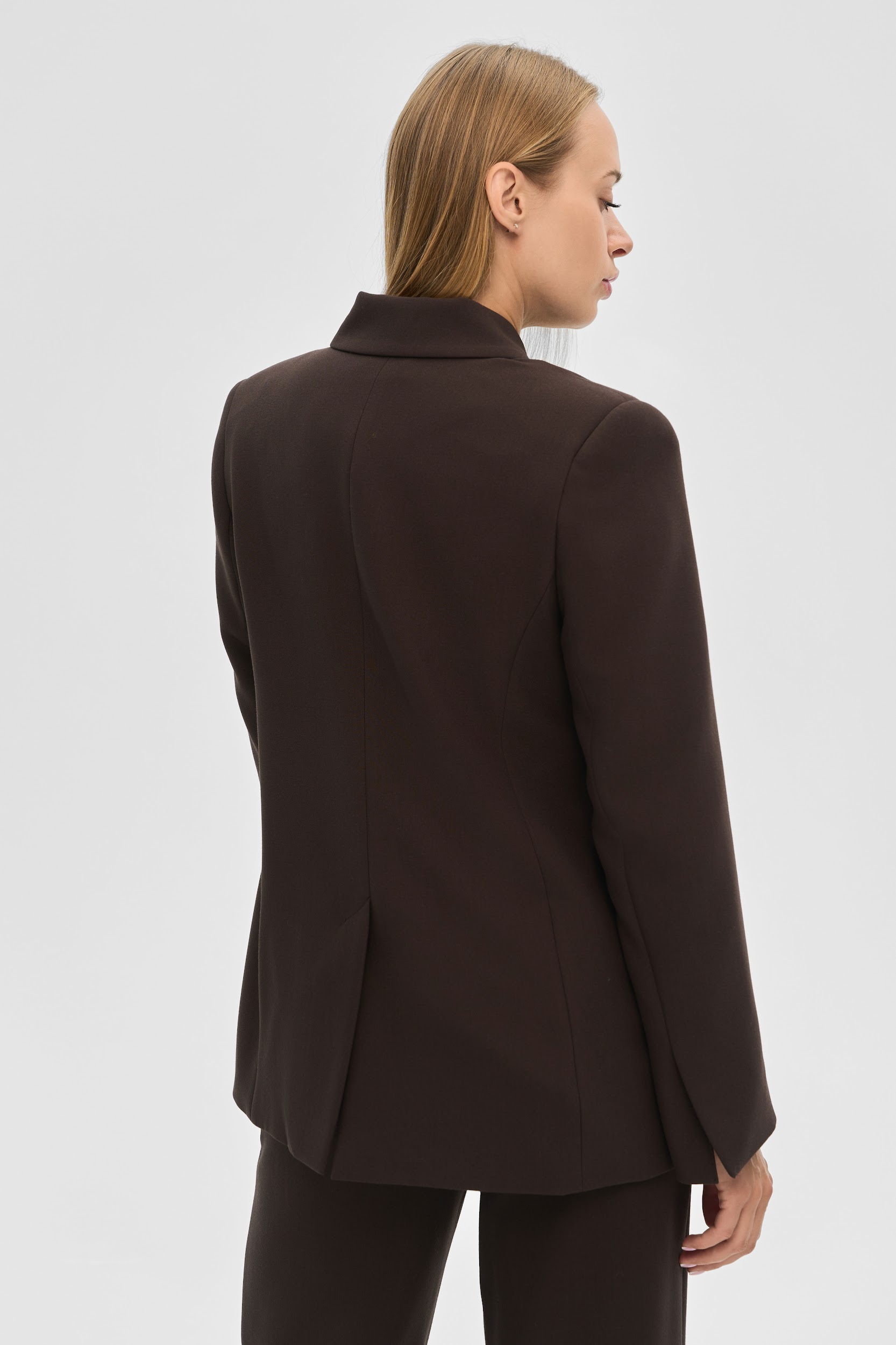 Современная классика с характером. Этот жакет в глубоком шоколадном оттенке создан для женщины, которая ценит безупречный крой, но ищет в одежде уникальные детали. Он станет центральным элементом вашего делового и вечернего гардероба.