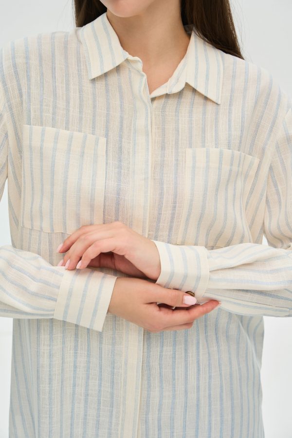 Есть вещи, которые никогда не выходят из моды. Эта классическая рубашка в полоску — именно такая инвестиция в ваш гардероб. Она является идеальной базой для создания множества образов, от сдержанных деловых до расслабленных повседневных, сочетая в себе безупречный крой и комфорт натуральных материалов.