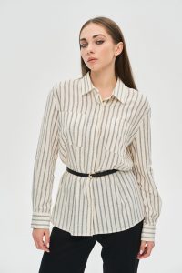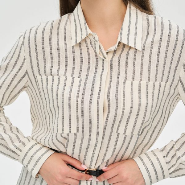 Есть вещи, которые никогда не выходят из моды. Эта классическая рубашка в полоску — именно такая инвестиция в ваш гардероб. Она является идеальной базой для создания множества образов, от сдержанных деловых до расслабленных повседневных, сочетая в себе безупречный крой и комфорт натуральных материалов.