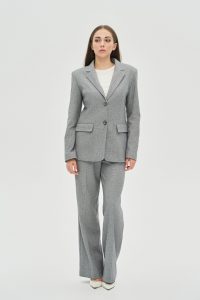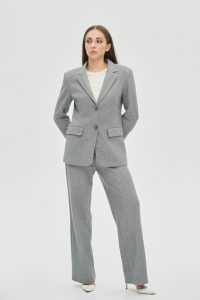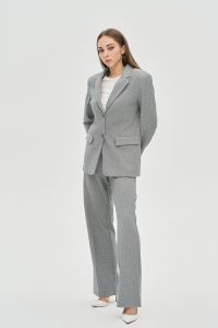 - Ткань: Выполнены из высококачественной плотной костюмной ткани с классическим узором «елочка», которая хорошо держит форму и обеспечивает комфорт.