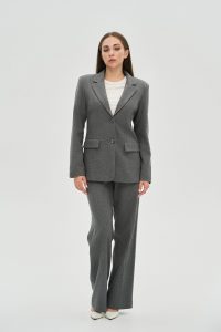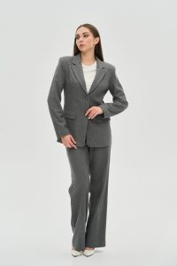 - Ткань: Выполнены из высококачественной плотной костюмной ткани с классическим узором «елочка», которая хорошо держит форму и обеспечивает комфорт.